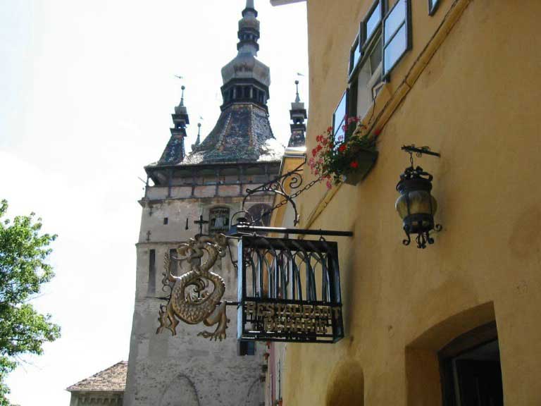 ルーマニアの北西部、首都ブカレストから北西約300kmのところにあり、トランシルバニア地方の中心地にあるのがシギショアラ歴史地区、 中世の面影を色濃く残した街で中世ドイツの典型的な建築様式や、小さな要塞化都市の街並みが保持されている 街の代表物は 「時計の塔」高さ64m、14世紀に建てられた、ドラキュラ伯爵(ヴラド・ツェペシュ公)のモデルとなった人物の生家もある。 (現在はレストラン)。